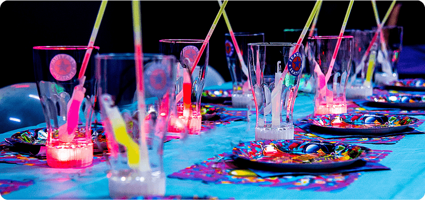 Bring on the neon and make use of our black light by adding the Glow Party option to your party package. Just let us know when making your reservation.
