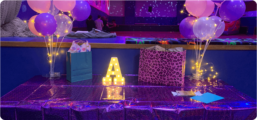 When you arrive, you and your guests will check in at the front office and be guided to your designated table by a Party Server. Your first 45 minutes will be free to get situated and begin to skate. Drinks will be served about halfway through your booking along with any food you purchased in time for you and your guests to sing happy birthday, eat cake, and open gifts!