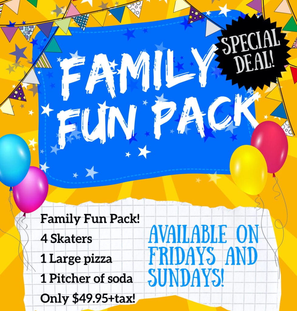 Group skating lessons are available every Saturday from 11:30am – 12:00pm. After each lesson, you can continue skating for FREE during our regular hours.